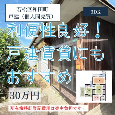 【戸建】北九州市若松区和田町 30万円 個人間売買物件です!