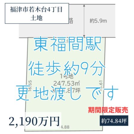 【期間限定売地】福津市若木台4丁目 2,190万円 東福間駅徒歩9分!3号線へのアクセス良好!更地渡し!