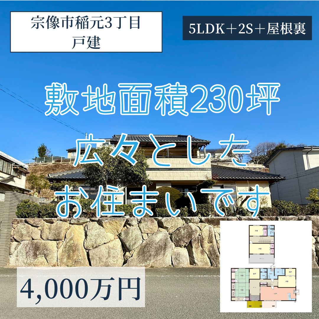 【戸建】宗像市稲元3丁目 4,000万円 敷地面積230坪もの広々お住まい!