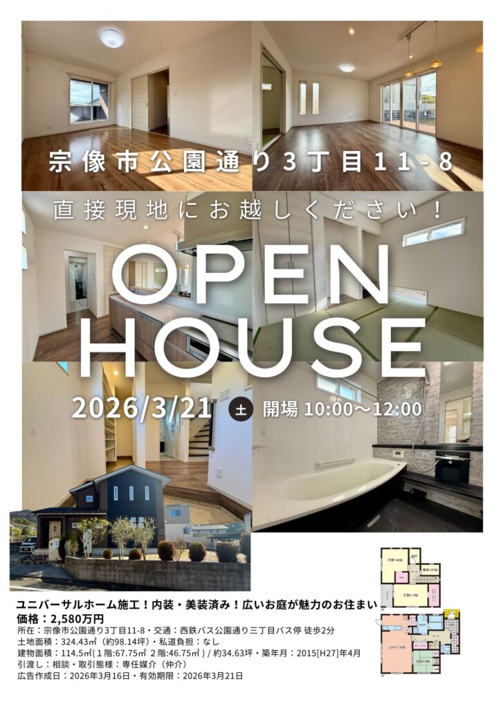 【オープンハウス】3月21日(土)10時〜12時 宗像市公園通り3丁目