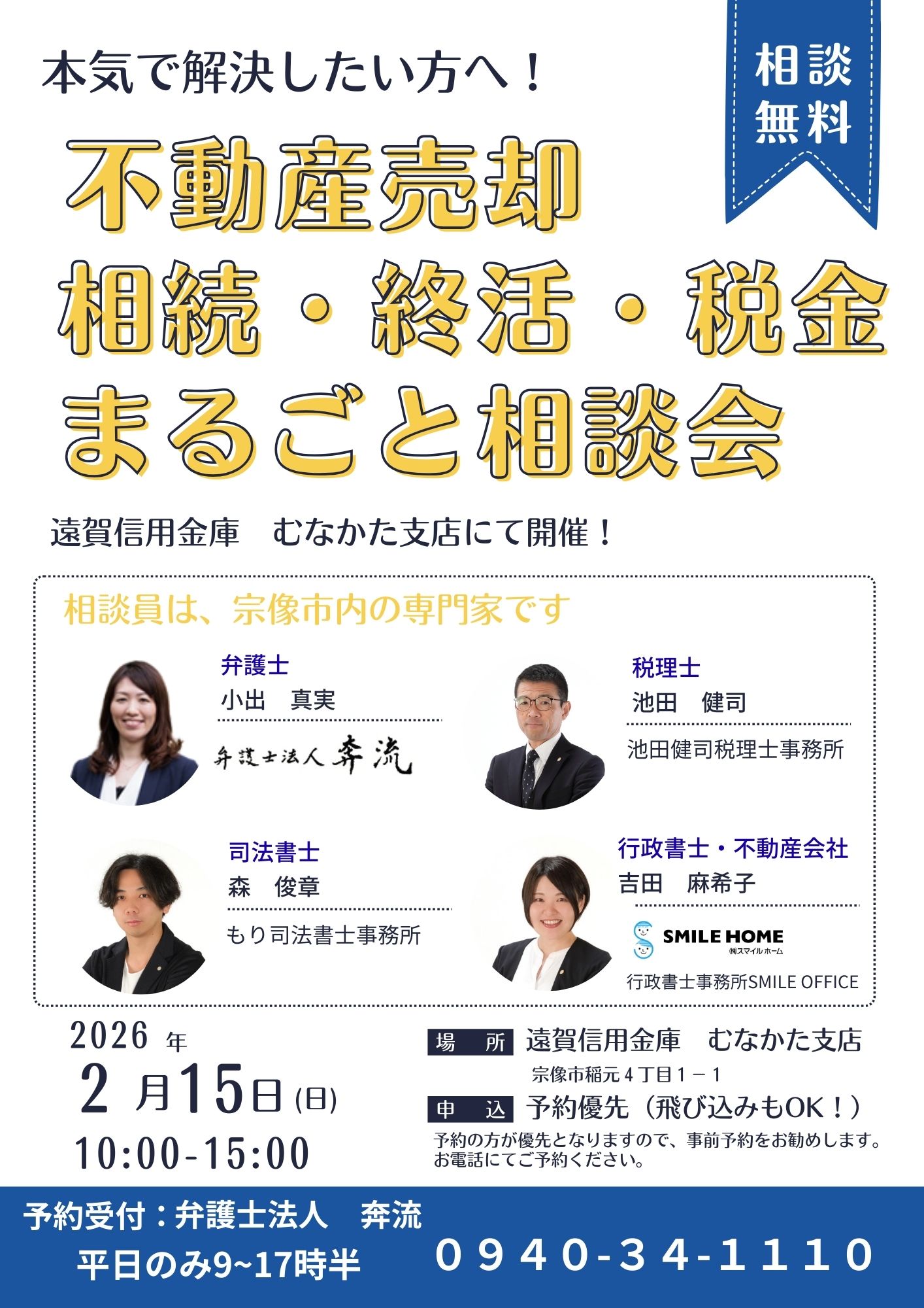 弁護士・税理士・司法書士・行政書士・不動産会社に無料で相談ができる相談会を開催します!